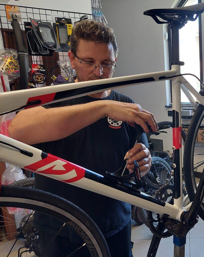 Dalla semplice riparazione delle foratura ad interventi più complessi che riguardano la meccanica di bici professionali per corse su strada, mountain bike o e-bike, il nostro staff esperto è tua disposizione per risolvere ogni tipologia di problema legato alla vostra bicicletta.